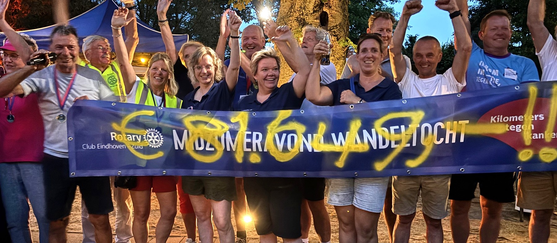 Wat een bedrag! 82.178 euro is er afgelopen weekeinde opgehaald tijdens de Midzomeravond Wandeltocht van de Rotary Eindhoven-Zuid. Ruim 1000